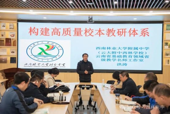 最后,学员们移步至世界茶叶图书馆。在此,西林附中洪涛副校长与各位骨干校长进行了专题交流分享。洪副校长聚焦“构建高质量校本教研体系”这一主题,详细介绍了我校在师徒结对、集体备课、教案精细化管理等方面的特色实践与制度创新,分享了依托大学资源、立足本校实际推动教师专业成长与教学质量提升的经验与思考。交流氛围热烈,引发了广泛共鸣与深入探讨。
