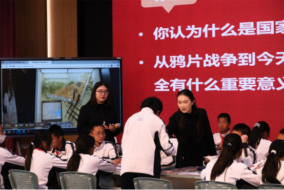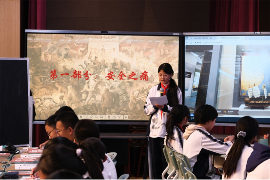 课堂以“安全之痛”与“安全之行”为主线展开。谭笑老师从鸦片战争、甲午海战讲起。一份份不平等条约,一幕幕水师覆灭的史实,让学生们面色凝重。“国防薄弱,国家危亡”的历史教训,变得无比真切。