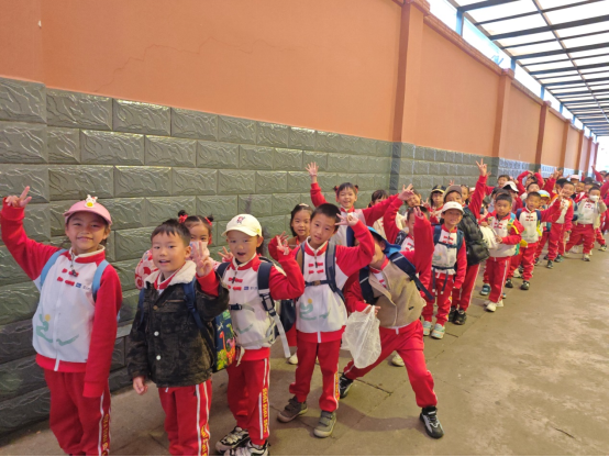 一、二年级的小朋友们如同欢快的小鸟,早早来到了研学基地。他们的小脸上洋溢着抑制不住的兴奋,眼睛里闪烁着对未知的期待。在“热身宣讲活动注意事项”环节,老师们像大朋友一样,耐心地叮嘱着小朋友们要注意安全,跟着队伍,就像带着一群即将去冒险的小勇士们作最后的准备。