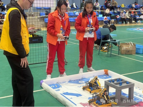 比赛场上我校选手们精神抖擞、沉着应战,在各个赛项中展现出过硬的综合素质:在 ROBOG “星弈行动” 赛项中,她们精准操控机器人完成任务,展现出超强的逻辑思维;在科学实验类赛项里,他们严谨操作、细致观察,用数据与现象诠释科学原理;在编程创意赛中,他们以清晰解题思路为核心,用精准代码高效应答,让创意巧思在题目解答中充分展现。