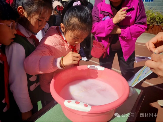 教师与家长志愿者全程护航,从材料分发到步骤指导,耐心解答孩子们的“十万个为什么”。完成一项实验,就能收获一枚专属打卡贴纸,集齐六枚即可兑换心仪小礼品,这份小小的成就感,让探索的热情愈发高涨。